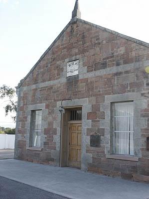 "...After meeting, the carriages being ready, the President and company bade goodbye to Bishop Gardner and the Saints there, and returned to the city, by the road on the west side of the river; a mounted escort accompanying for several miles. An interesting story is attached to this little rock church. In 1859 Archibald Gardner was ordained bishop of West Jordan Ward, then numbering about 600 members, and it was he who planned the sturdy building. After many difficulties because of crude tools, the cornerstone was laid May 15th, 1861. Many men worked for nothing; others were paid with produce. Red sandstone for the walls was hauled by ox, horse and mule teams from a quarry near the Oquirrh Range, and the granite trim came from Little Cottonwood Canyon. When the three-foot-thick walls had been erected and the floor laid, no more funds were available, so work came to a standstill.